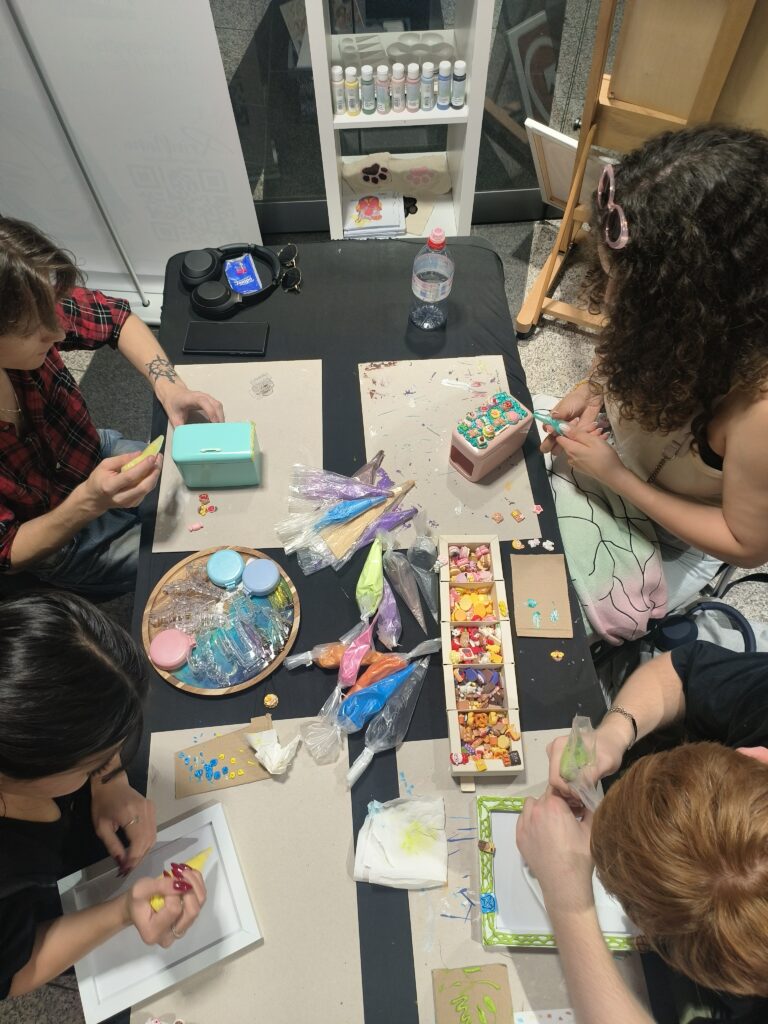 - Es wird verschiedene Kreativstationen geben, z. B. Zeichnen/Ausmalen, Needle Punching, Töpfern, Decoden Charms, Button Herstellung, Schmuck-/Schlüsselanhänger-Herstellung usw.